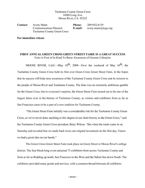 title: "FIRST ANNUAL GREEN CROSS GREEN STREET FAIRE IS GREAT SUCCESS"